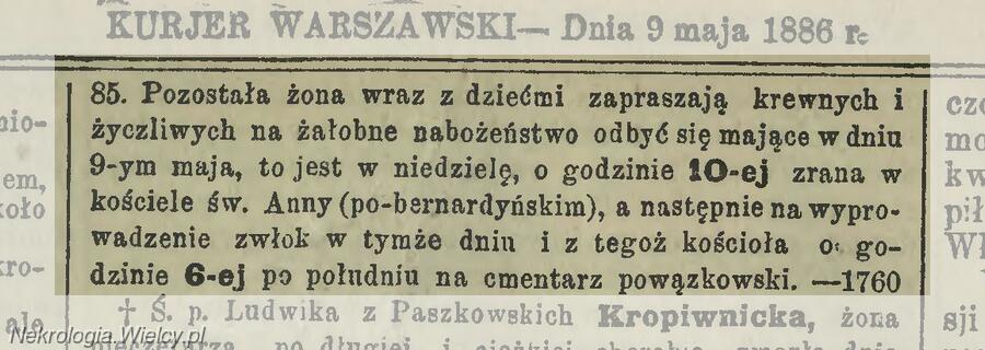 9 maja 1886 (niedziela) - „Kurier Warszawski” 127/1886 str. 4 [nr 127]