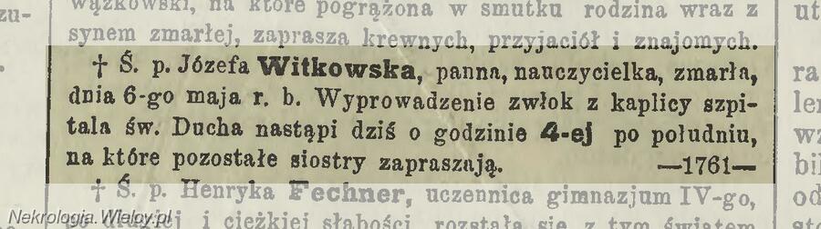 Józefa Witkowska ?–1886