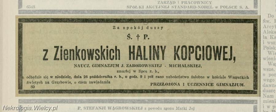 Halina Zienkowska (Kopeć) ~1889–1930