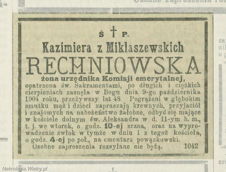 Kazimiera Miklaszewska (Rechniowska) ~1856–1904